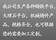 全意鑄鐵平臺平板廠家專注生產(chǎn)T型槽鑄鐵平臺,大理石氣浮實驗石平臺,han接鑄鐵平臺,裝配鑄鐵平臺,檢測測量大理石平臺,試驗鑄鐵平臺,測量大理石平板,T型槽平臺,電機(jī)試驗平臺,三坐標(biāo)測量平臺等鑄鐵平板來圖加工定做業(yè)務(wù),以合理的價格,專注的技術(shù)服務(wù)于國內(nèi)外客戶,互利合作,共同發(fā)展!公司位于河北交河開發(fā)區(qū),京滬鐵路、104國道、106國道、京福高速公路橫穿而過,與我國的兩大直轄市北京、天津近在咫尺,地理位置優(yōu)越,交通非常便利。我公司本著以誠納客”“嚴(yán)把質(zhì)量關(guān)”“價格優(yōu)惠”“用戶至上的原則,幾十年兢兢業(yè)業(yè),受到用戶的一致好評!